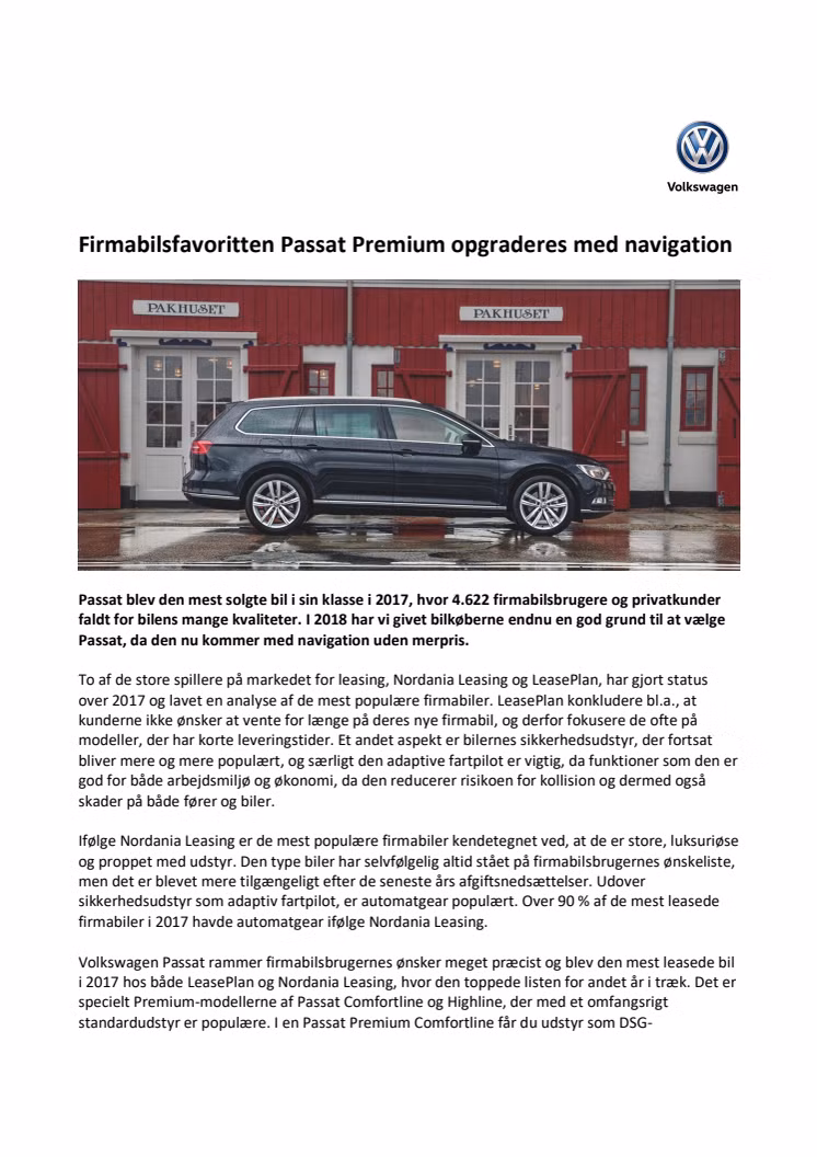 Firmabilsfavoritten Passat Premium opgraderes med navigation